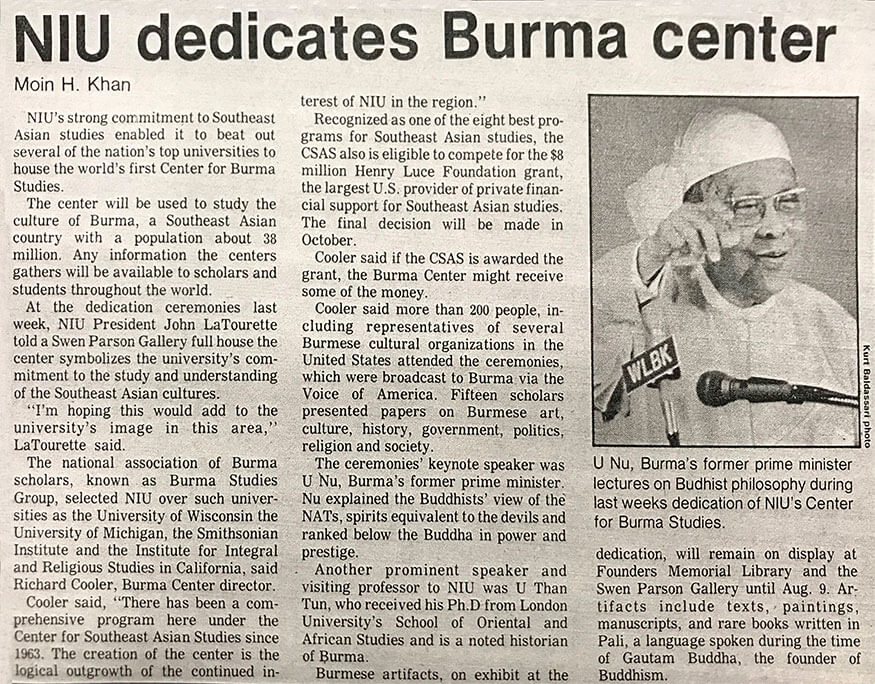 NIU’s strong reputation in Southeast Asian Studies was put to the test in the 1980s when the national association of Burma scholars (known as the Burma Studies Group) was seeking a location for its extensive collection.